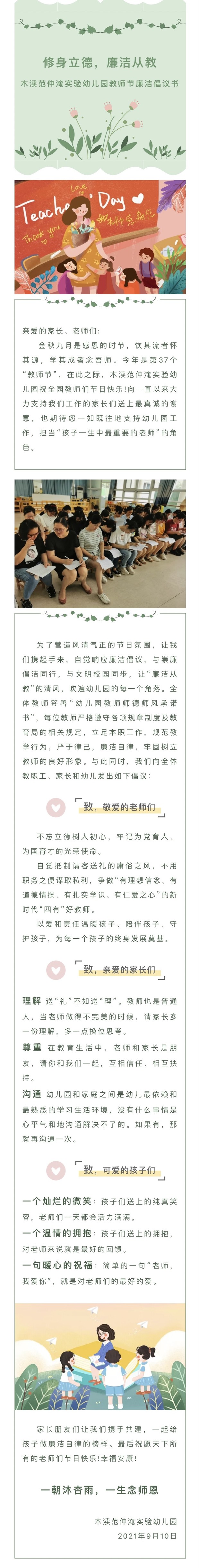 修身立德,廉洁从教——木渎范仲淹实验幼儿园教师节廉洁倡议书