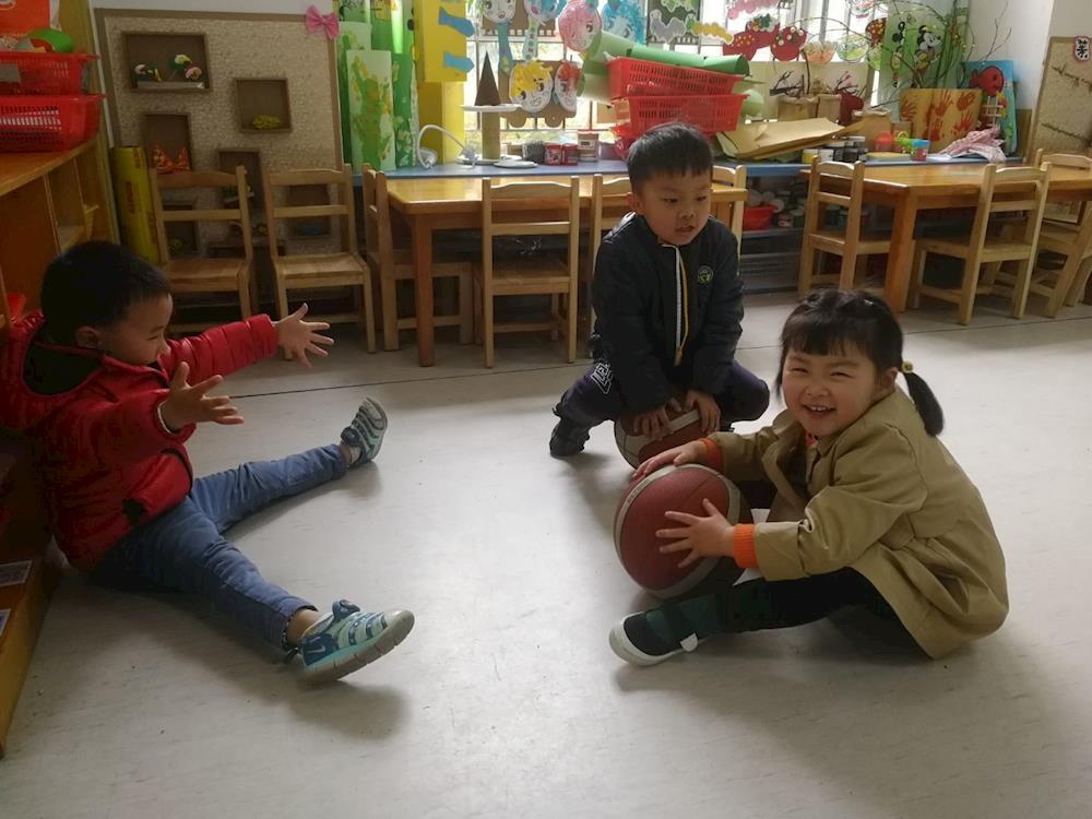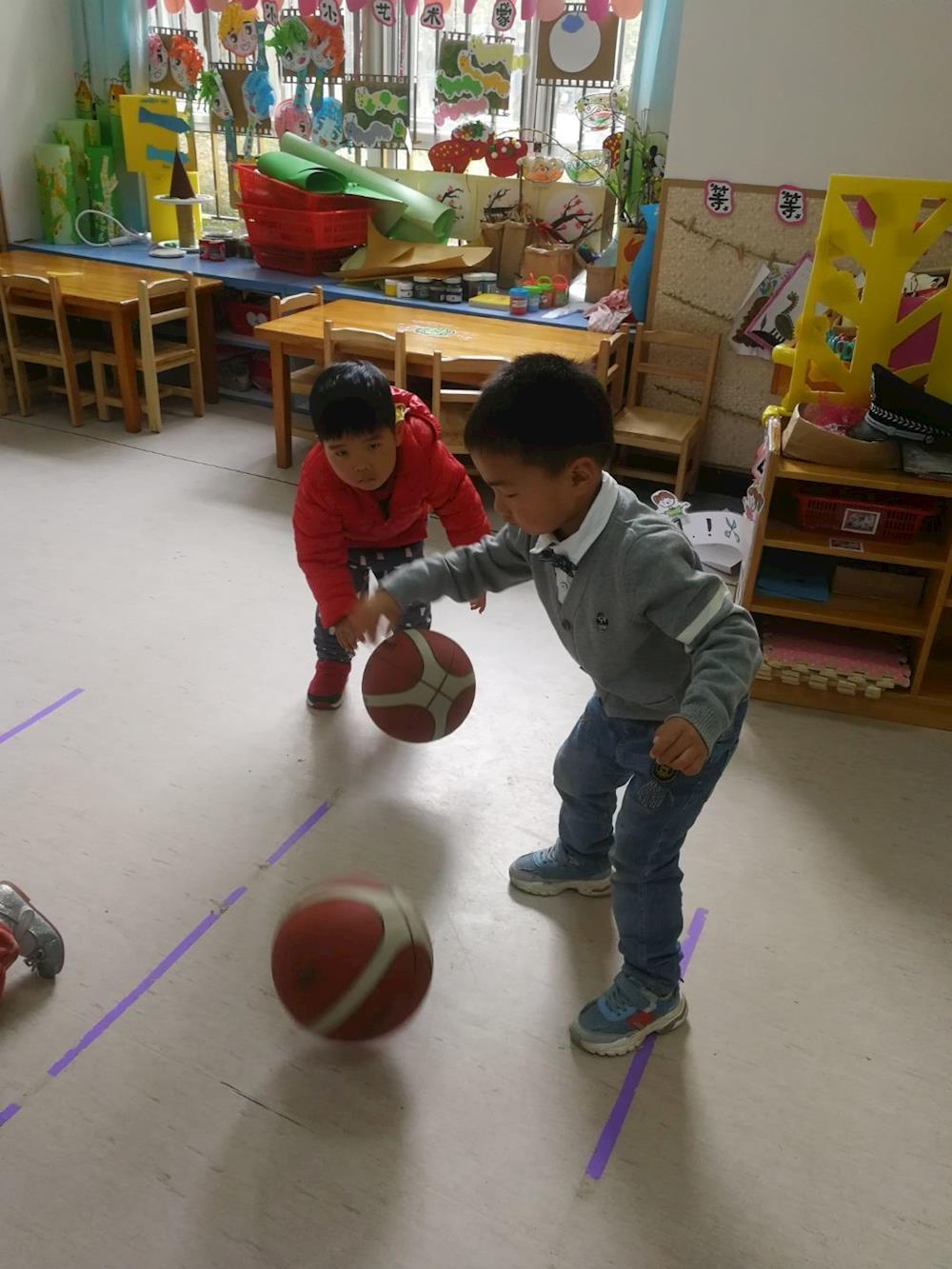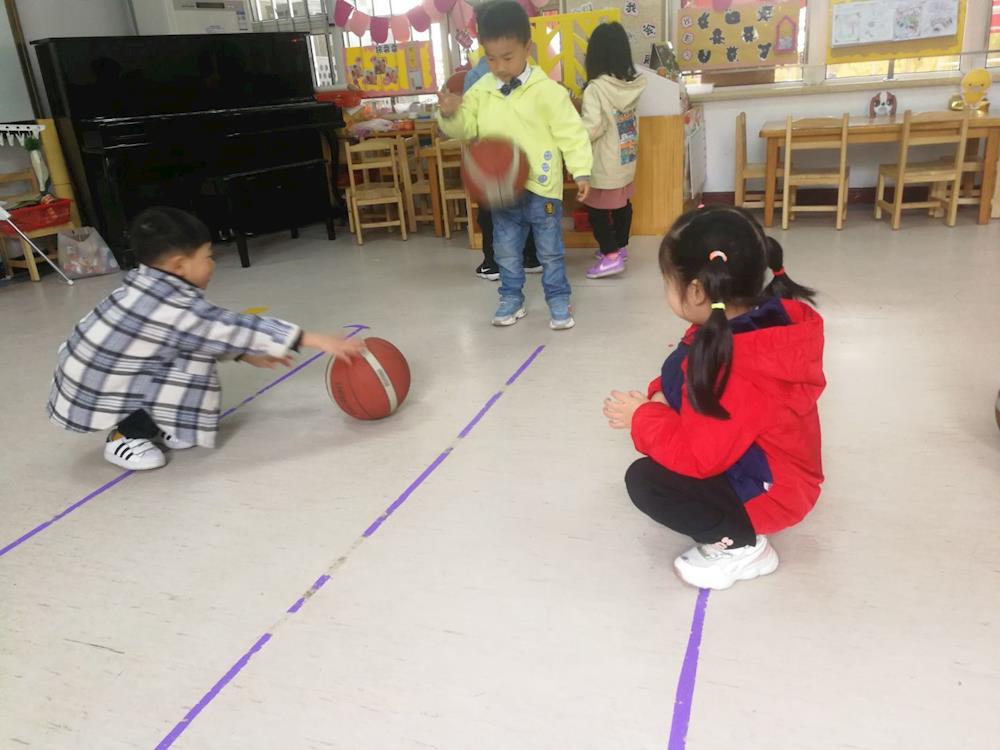 瞧,我们玩篮球的方法有很多,拍球、滚球、传球等等。