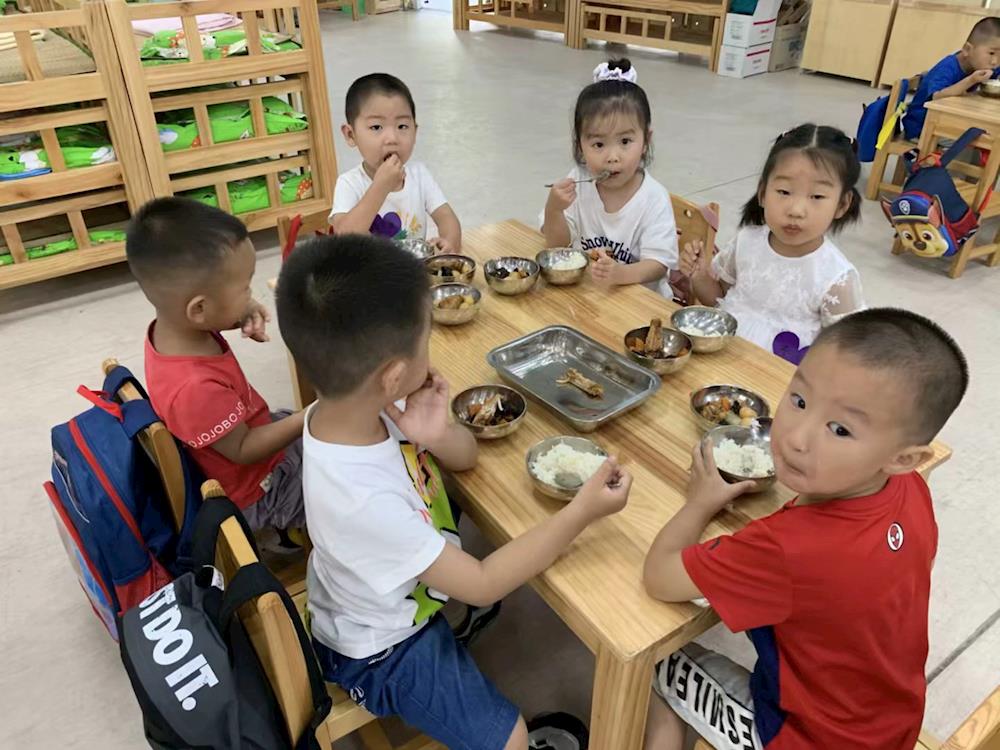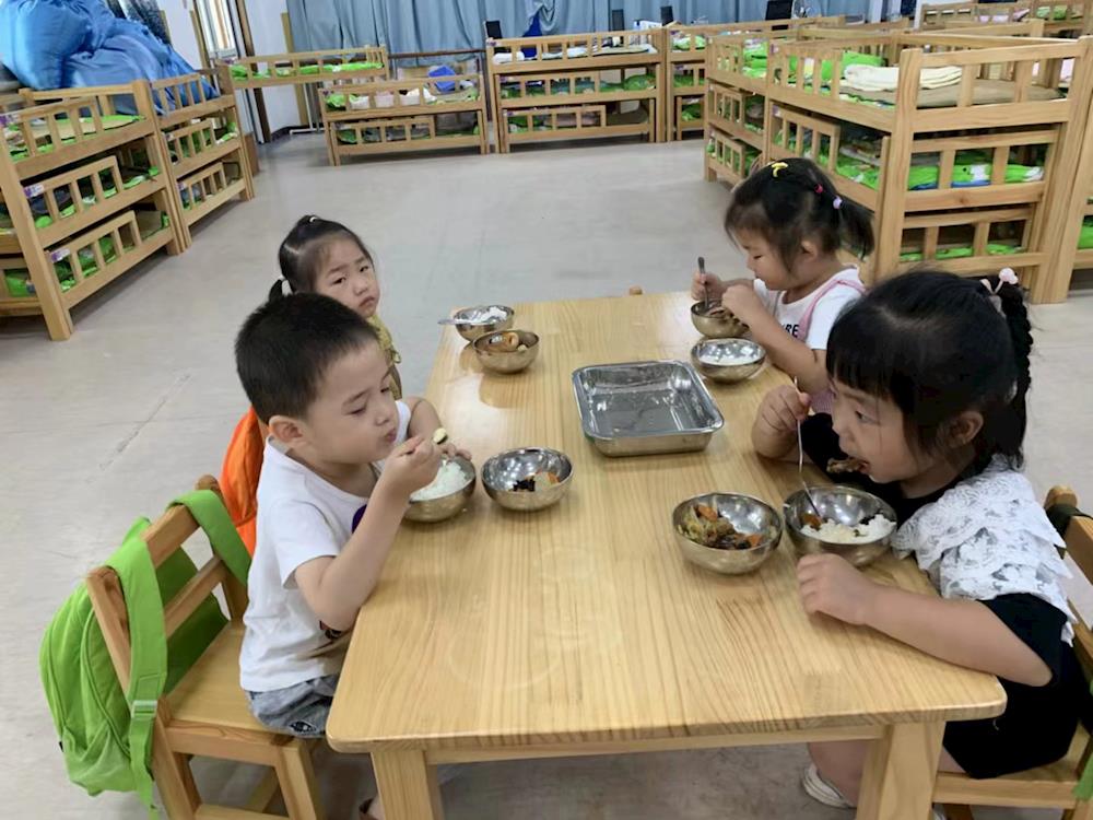 上幼儿园真开心,我们学会了自己吃饭和睡觉。