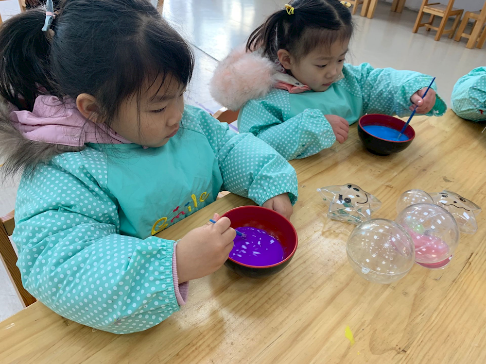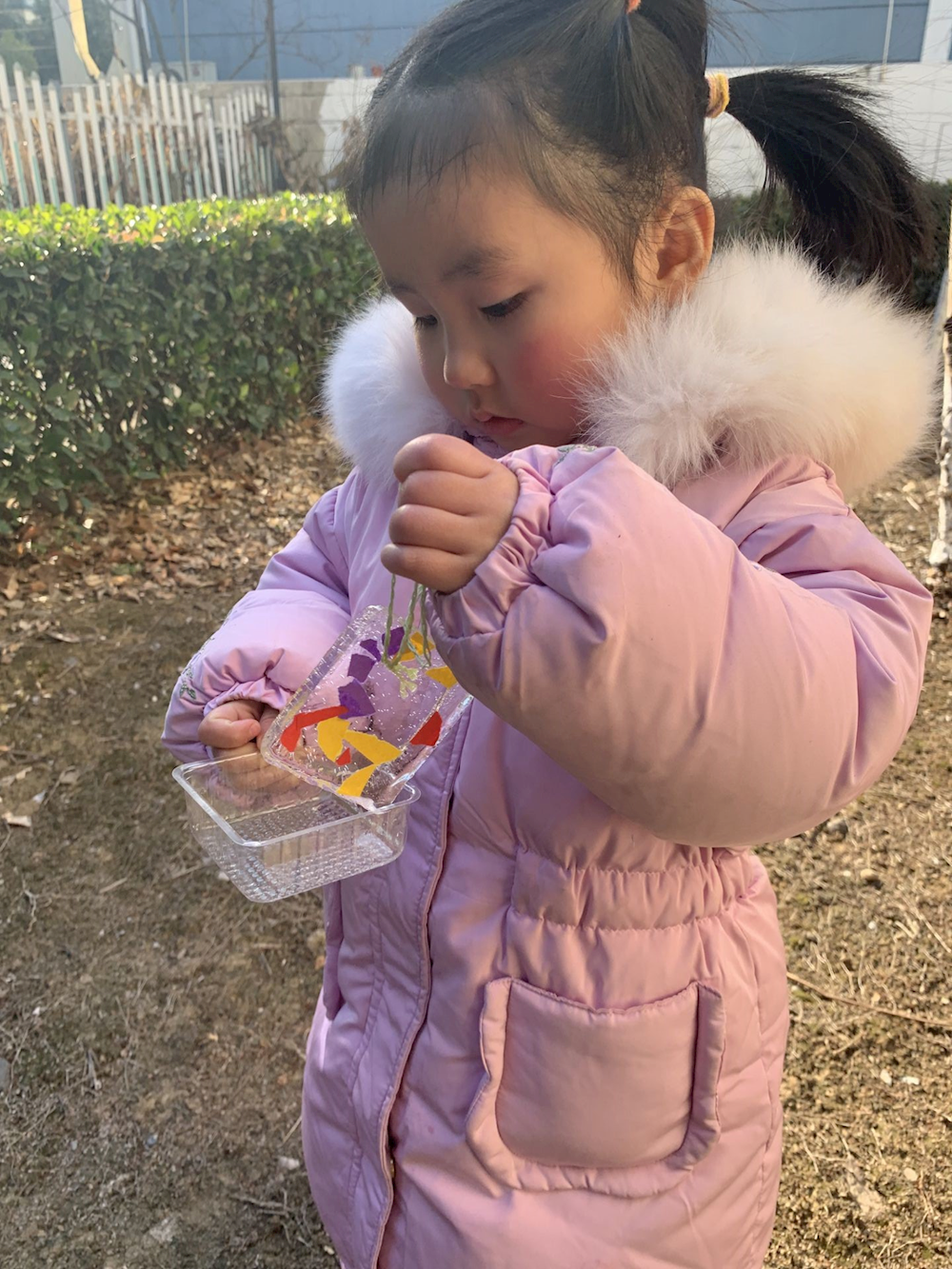 下雪了,宝贝用不同的材料制作出不同形状和不同颜色的冰。