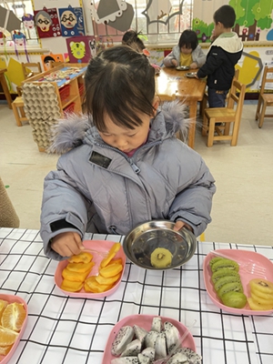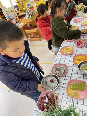 这么多的水果,我每个都想尝一尝,怎么办呢?我们来一场水果自助吧!