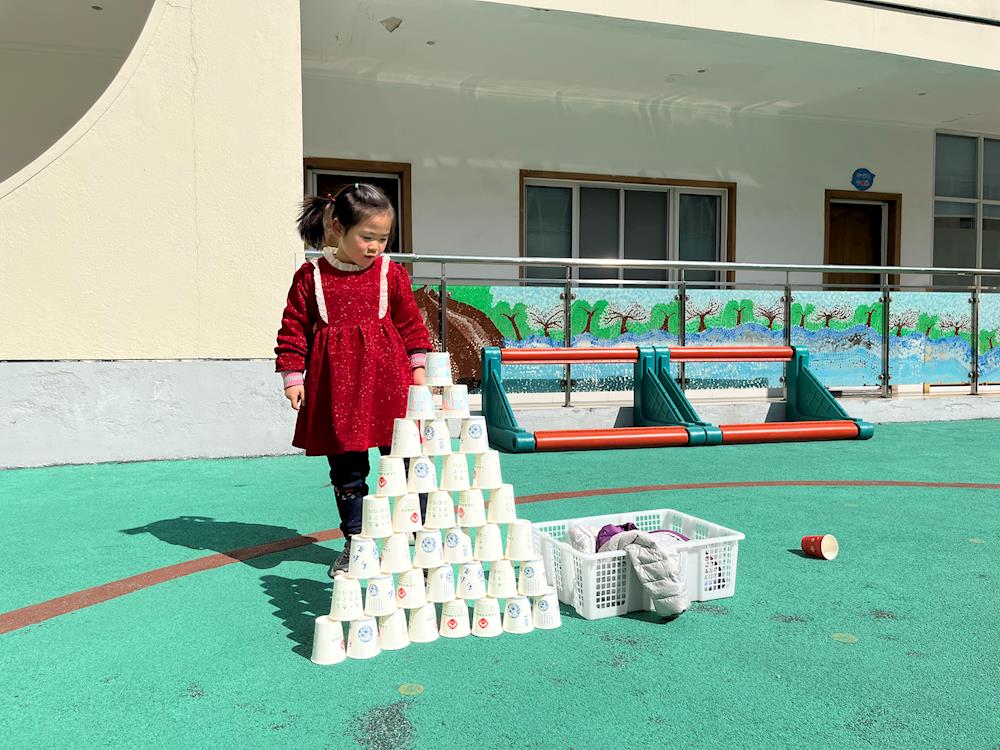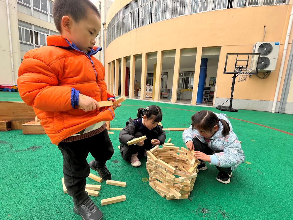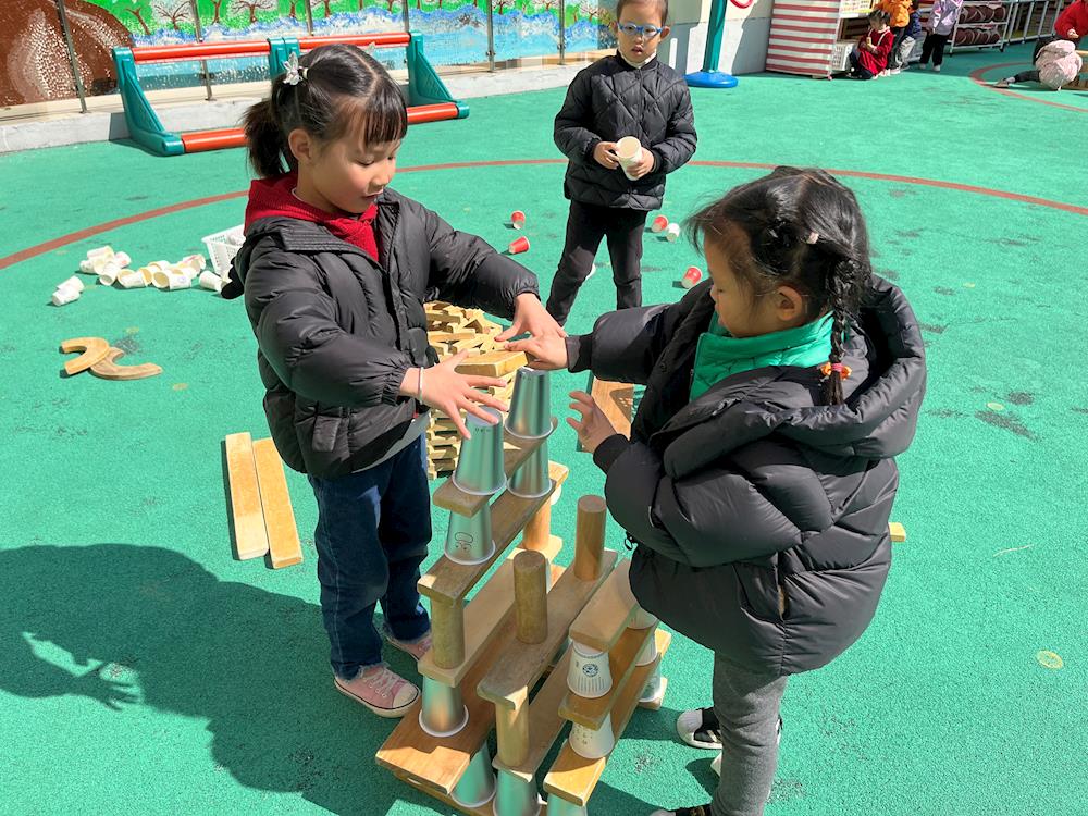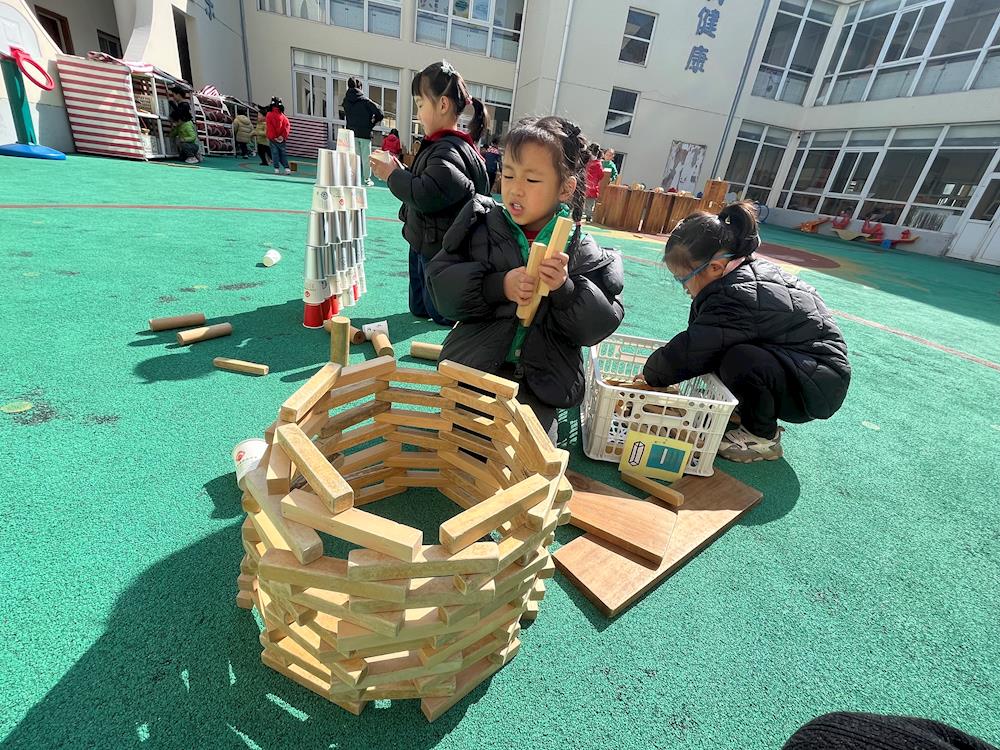 看!我们运用架空、垒高、塔式等技能来建构啦!